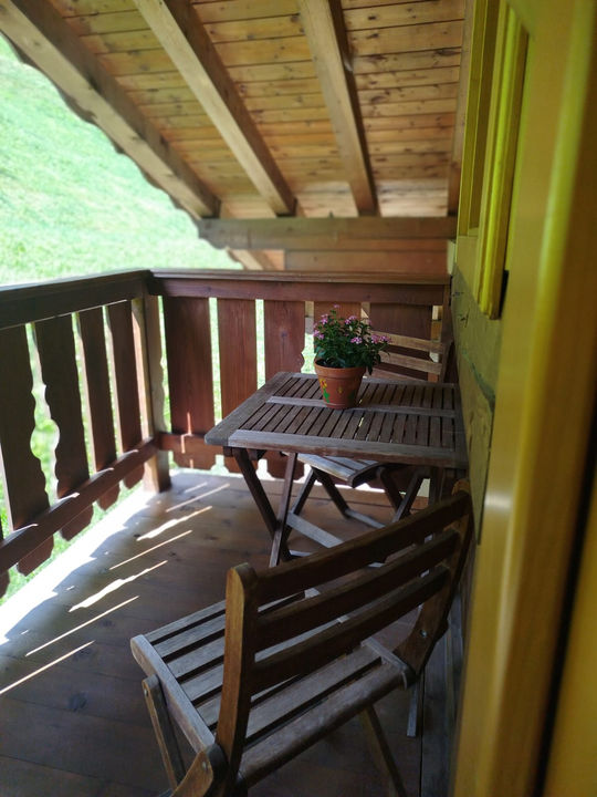Due balconi con tavolo, sedie e due sedie a sdraio